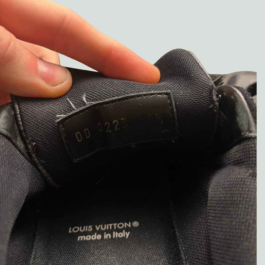 These Louis Vuitton LV Trainers are in good pre-owned condition (8/10 overall). Normal wear is visible on the uppers and soles.