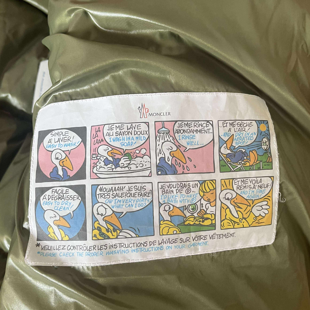 Interior: Nylon lining with signature Moncler comic strip label